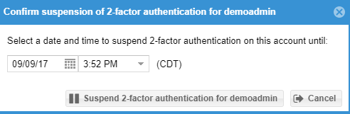 Administrators may suspend or remove 2-factor authentication for users they administer.