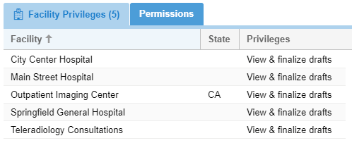 - Proofreaders (Radiology assistants, transcriptionist, or radiologists) may be given the "View and Finalize drafts" facility privilege for the facility that has the report review workflow enabled.